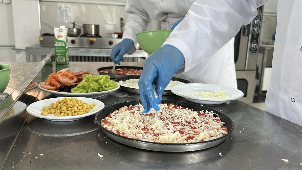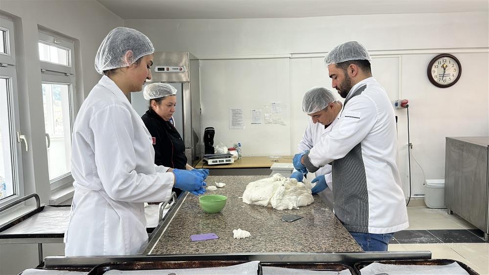 Konaklama ve Seyahat Hizmetleri Öğretmeni Halil Murat ise atölyede haftada 3 gün üretim yaptıklarını ifade ederek, "İşimize sabah başlıyoruz. Akşam üstü de 4'e kadar üretimler yapılıyor. 2 sene öncesinde başladığımız zaman sadece ekmek üretimi vardı. Daha sonrasında da erişte, kek, pizza gibi glutensiz ürünleri üretmeye başladık. Son bir aydır da yaş pasta ve tatlı çeşitlerini üretmeye başladık. Çünkü bize bu noktada çok fazla talep geliyor. Özellikle çölyak hastası çocuklardan bize talepler geliyor. Bizler de üzerinde çalıştık ve bu ürünleri üretmeye başladık. Şu anda yaklaşık 9-10 çeşit ürün çıkartabiliyoruz" şeklinde konuştu.A W677165 05