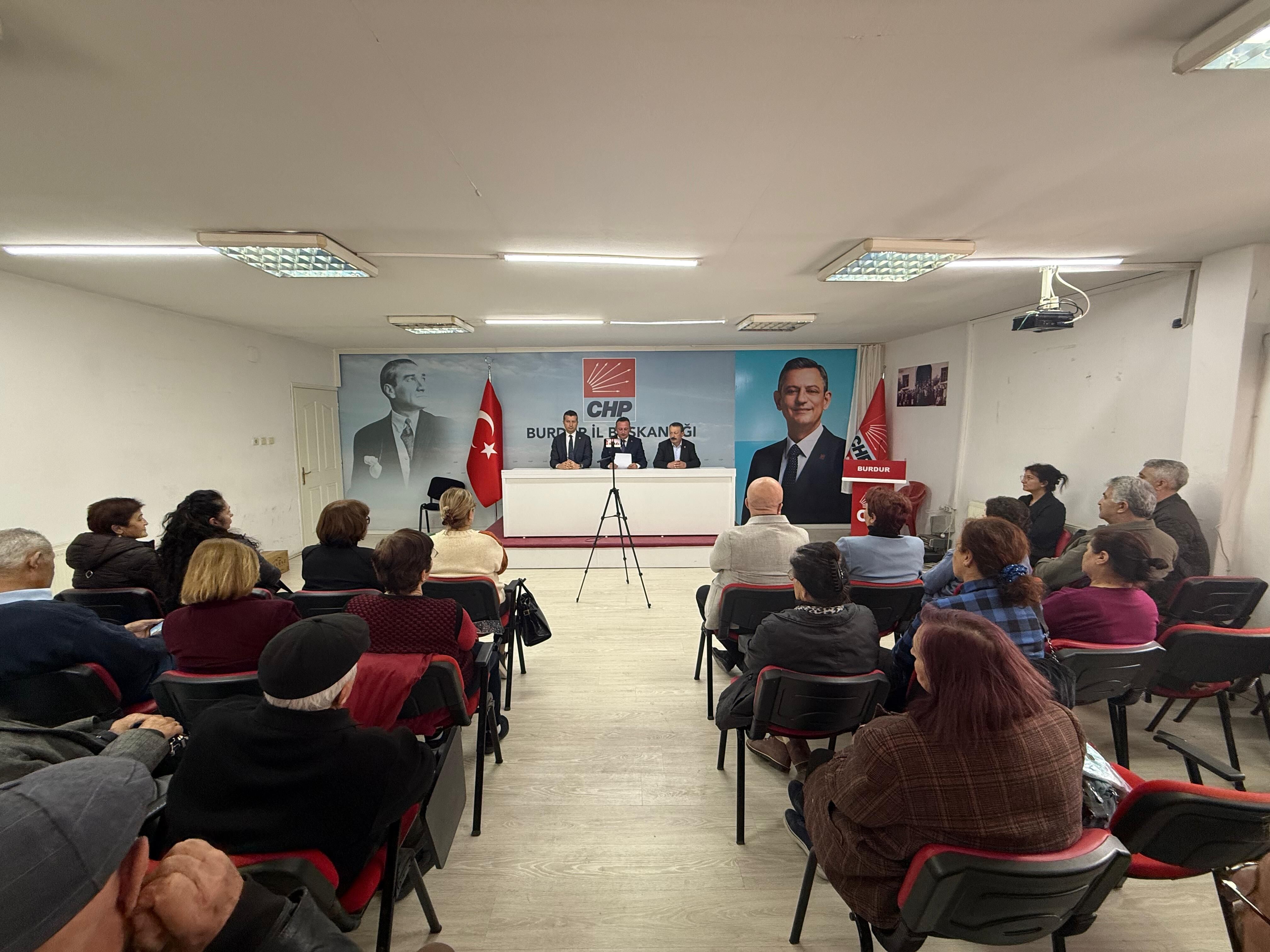 Burdur’da Cumhuriyet Halk Partisi (CHP) İl Başkanlığı’nda düzenlenen basın açıklamasında, tutuklu Cumhurbaşkanı adayı Ekrem İmamoğlu’nun yurttaşlara hitaben kaleme aldığı mektup kamuoyuyla paylaşıldı.
