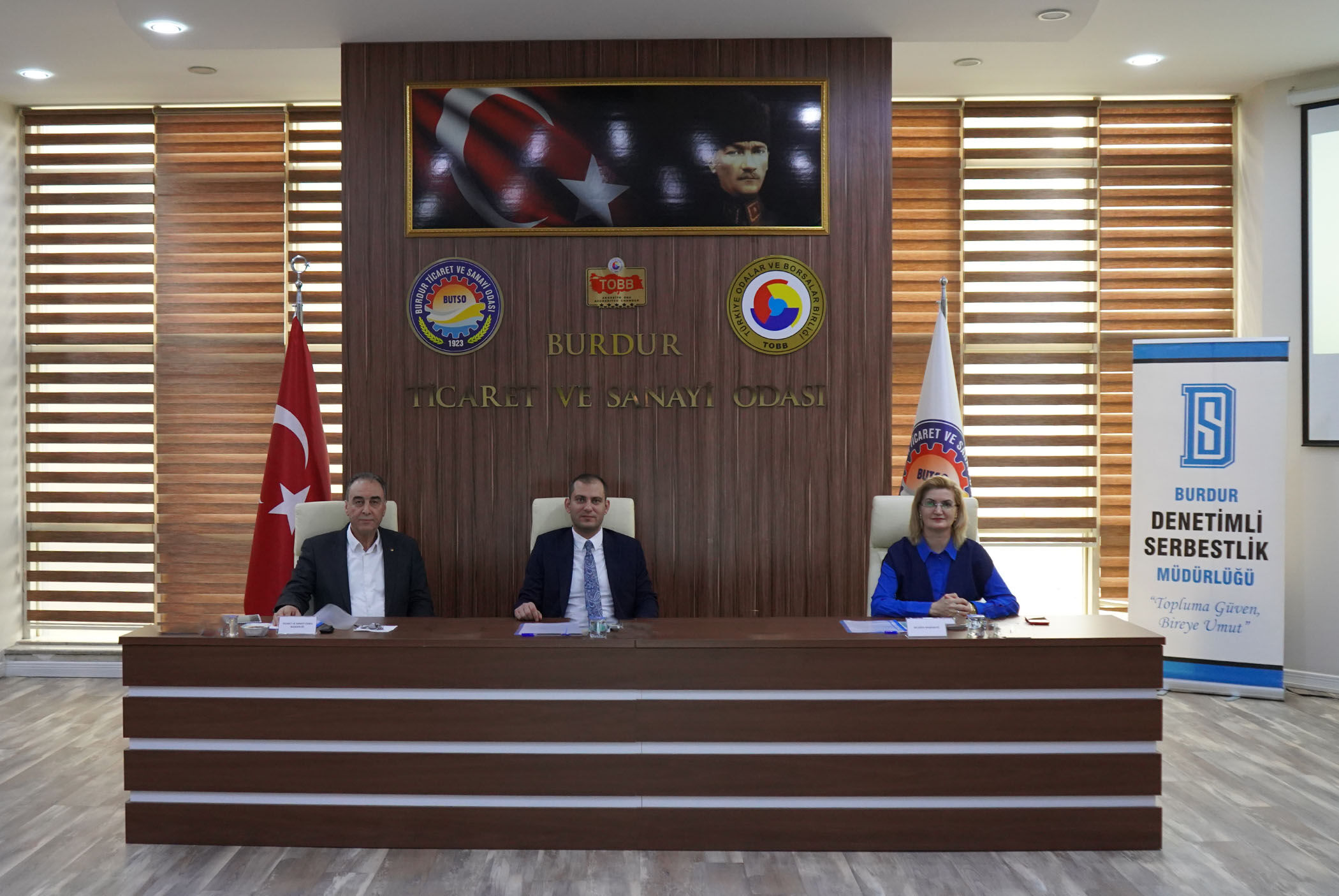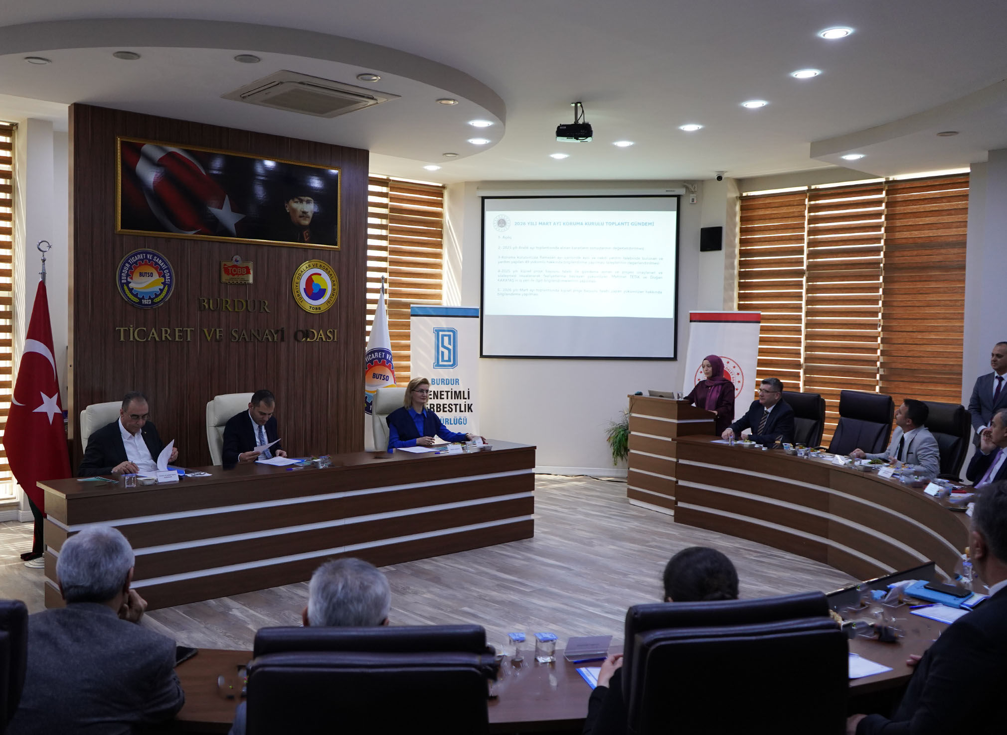 T.C. Adalet Bakanlığı Burdur Cumhuriyet Başsavcılığı Koruma Kurulu Başkanlığınca Burdur Ticaret ve Sanayi Odası Meclis Salonunda “Koruma Kurulu’nun 2026 Yılı mart ayı toplantısı” programı gerçekleştirildi. Programda cezasını tamamlamış hükümlülerin yeniden topluma kazandırılması ve adaptasyonu vurgulandı. Burdur Cumhuriyet Başsavcısı Harun ÜNLÜSOY Başkanlığında gerçekleştirilen toplantıda gündem maddeleri görüşüldü. Sosyolog Kevser Kansu ÖZER tarafından Koruma Kurulunun faaliyetleri hakkında sunum yapıldı. Kurulun; hibe, destek, meslek edindirme kursları, kendi işini kurma projeleri ve diğer çalışmaları aktarıldı. BURDUR GÜVENLİ İL Cumhuriyet Başsavcısı Harun ÜNLÜSOY, kurulun çalışmaları için teşekkür ederek, katılımcılara hükümlüler ile Burdur’daki Ceza İnfaz Kurumunun güncel durumu hakkında bilgilendirmede bulundu; asayiş rakamları dikkate alındığında Burdur’un güvenli bir il olduğunu açıkladı. Başsavcı ÜNLÜSOY, kurulun çalışmalarına destekte bulunan tüm kurum ve kuruluşlara da teşekkür etti. İNSAN ÖZGÜRLÜĞÜ ÖNEMLİ Ev sahipliğinden memnuniyet duyduğunu, katılımlarından dolayı kurul üyelerine ayrı ayrı teşekkür ettiğini belirten Burdur Ticaret ve Sanayi Odası Yönetim Kurulu Başkanı Yusuf KEYİK; insan özgürlüğünün önemli olduğunu, yarın ne olacağını kimsenin bilmediğini ve hükümlülüğün herkesin başına gelebilecek bir durum olduğunu kaydetti. Başkan Yusuf KEYİK Ticaret ve Sanayi Odası başta olmak üzere sivil toplum örgütlerinin imkanları dahilinde Koruma Kurulu’na destek verdiğini belirtti. KATILIMCILAR Koruma Kurulu mart ayı toplantısına: Cumhuriyet Başsavcısı Harun ÜNLÜSOY’un yanı sıra Burdur Belediye Başkan Yardımcısı Hülya ERASLAN, Kampüs Açık Ceza İnfaz Kurumu Müdürlüğü, Denetimli Serbestlik Müdürlüğü, İl Milli Eğitim Müdürlüğü, Aile ve Sosyal Hizmetler İl Müdürlüğü, Çalışma ve İş Kurumu İl Müdürlüğü, SYDV İl Müdürlüğü, Gençlik ve Spor İl Müdürlüğü, Kızılay, Halk Bankası, Ziraat Bankası, Şeker Fabrikası müdür, yönetici ve temsilcileri, Ziraat Odası Yönetim Kurulu Başkanı Kemal KUBİLAY, Burdur Ticaret Borsası Genel Sekreteri Naile Küçükkepeci ERGÜN, BUTSO Meclis Üyesi ve Koruma Kurulu Üyesi Cafer ÖZALP ve kurul üyeleri katılım sağladılar. |